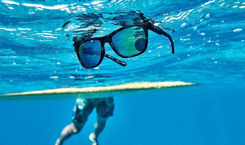 Constructed with a specially formulated injection molded resin with a density lower than water, allowing the sunglasses to float.
